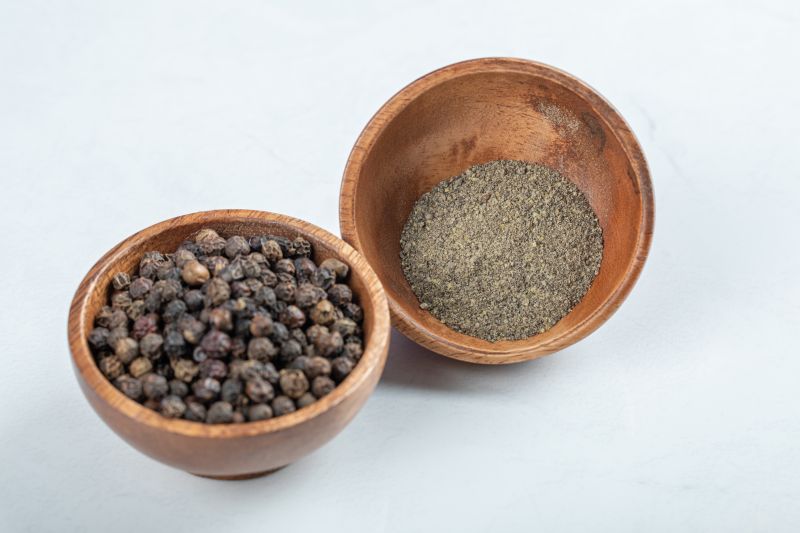 Black pepper powder is a ground spice made from the dried berries (peppercorns) of the Piper nigrum vine, known for its pungent, hot, and spicy flavor and warm, woody aroma. It serves as a common culinary ingredient worldwide, adding heat and depth to a vast array of dishes, including soups, stews, sauces, and salads. Beyond its flavor, black pepper powder contains the compound